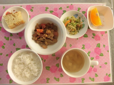 沢山の種類が入った大豆の五目煮でした。昆布だしが