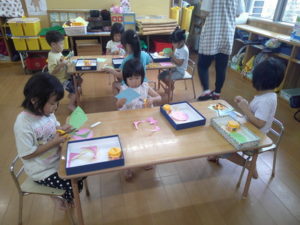 途中で午前寝をする子もいましたが、みんな泣かずに過ごせました。