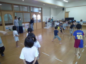 保護者の方も一緒に、しっぽ取りゲームやドッチボールなどルールのある遊びをしました。