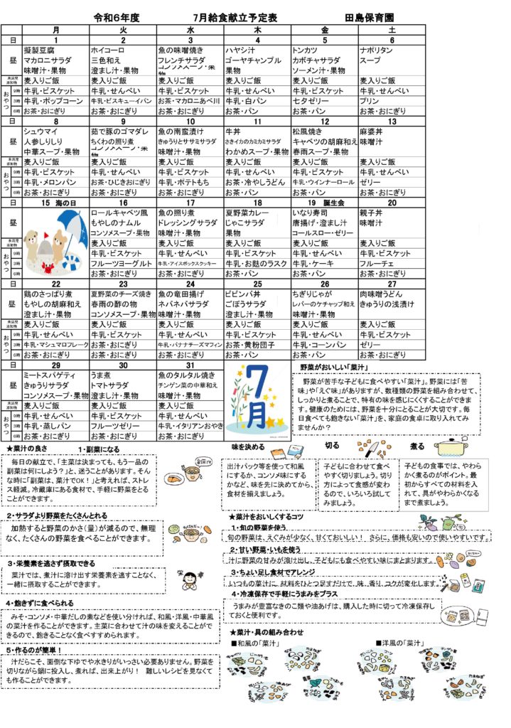 令和6年度 7月献立表