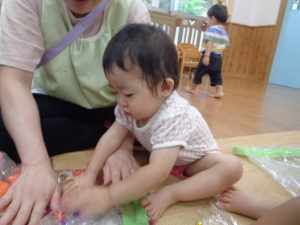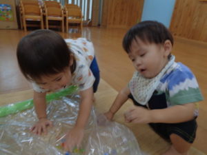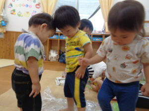 ひんやりした感触も音も心地よく、子ども達も喜んで遊んでいました。