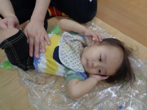 午前睡後、なかなか目が覚めない子も、マットの上が気持ちよくて思わず寝入ってしまう姿もありました。