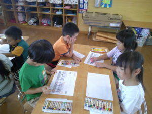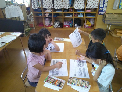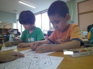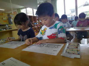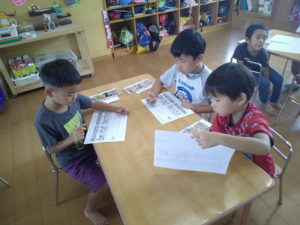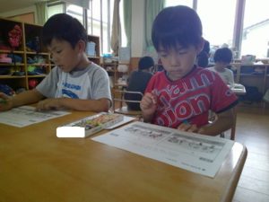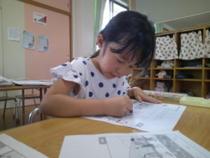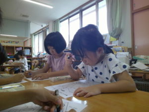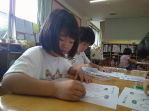 「お友達のを見ないで、自分で考えてする」というお約束をし、それをしっかり守る子ども達でした。