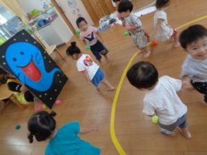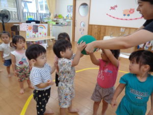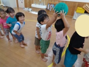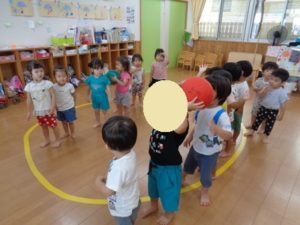 今日はプールで楽しんだ後、ボール🥎遊びをしています。