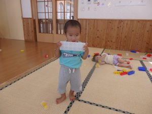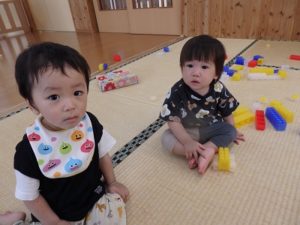 今日のりす組さんは部屋でおもちゃ遊び、絵本を読んでもらったりして過ごしました。
