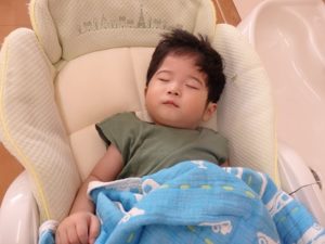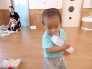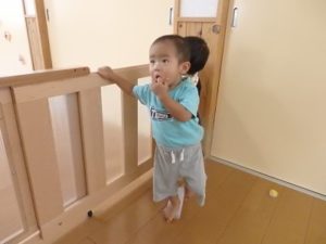びっくりした様子は見せますが座っておもちゃで遊ぶ姿が見られました。