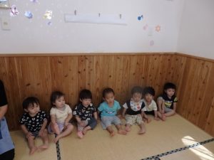部屋で遊んでいた子ども達は羨ましそうに眺めている子どももいました。