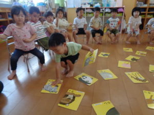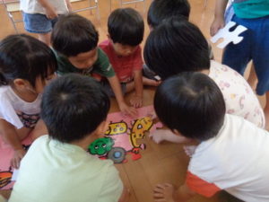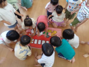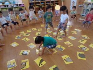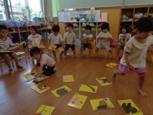 プール遊びの後は、知育遊びで「絵合わせカード」や「大きなパズル」を楽しみました♪