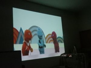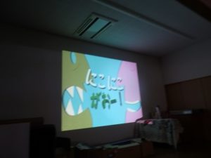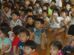 各クラスに放送で連絡し、保育士の誘導の元遊戯室に集まりました。