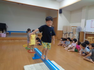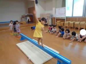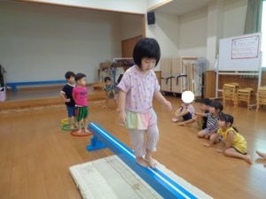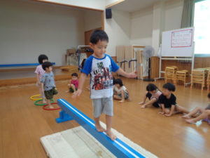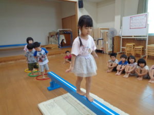 平均台では、得意な子は素早く渡る事が出来ていました。