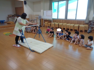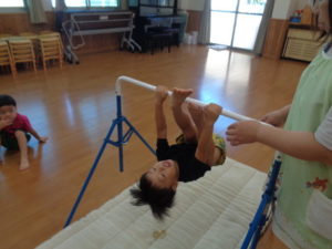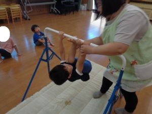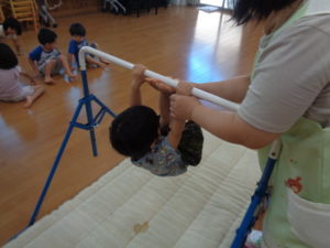 平均台・鉄棒を使い行いました。