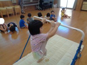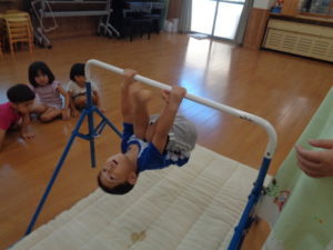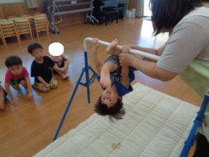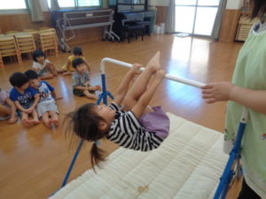 鉄棒では、足抜き回りが上手になった子も多く、少しずつ自信がついてきたように思えました。