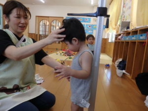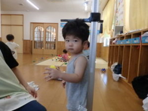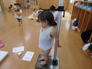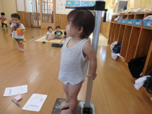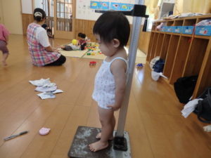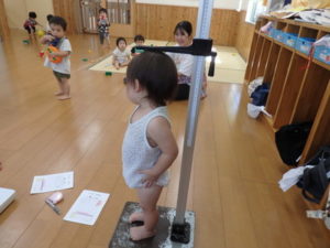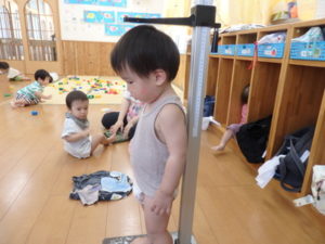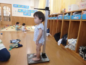 身長は、今まで寝て測るタイプの身長計でしたが、これから立位タイプの身長計を使う事になりました。