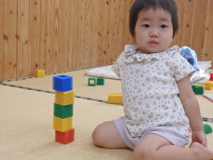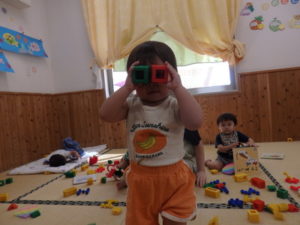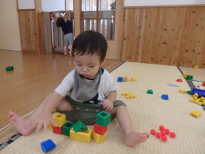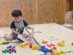 レゴブックを出すと、組み立ててお城みたいな物を作る友だちもいました。また、積み上げて「出来た~」