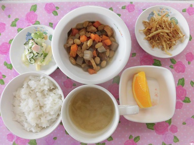 給食は、大豆の五目煮でした。