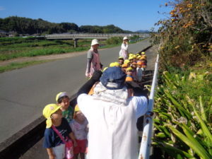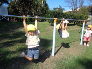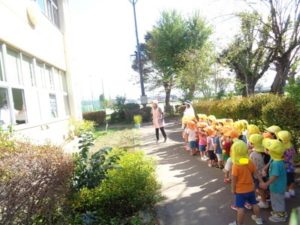 うさぎ組🐇のお友達の手を繋いで歩く、ぱんだ組🐼の子ども達です。