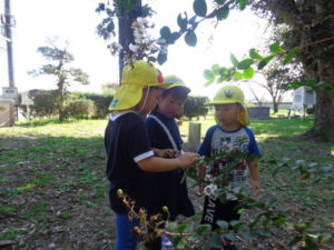 西小学校に行き、友情の森で虫探しをしたり、草花を摘んでみたりして過ごしました。