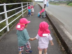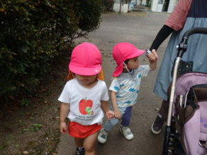 帰りも手を繋いで帰りますが、またまた、手を放して自由に歩きたがるりす組さんでした。