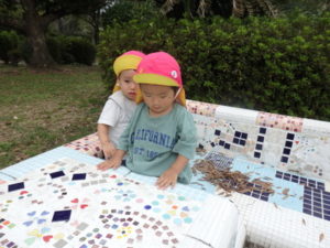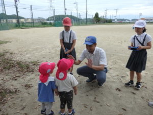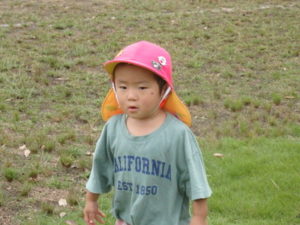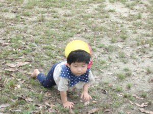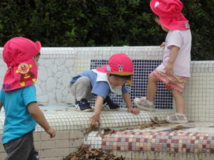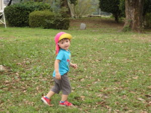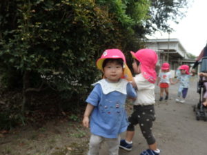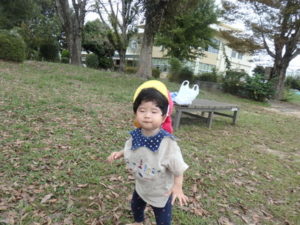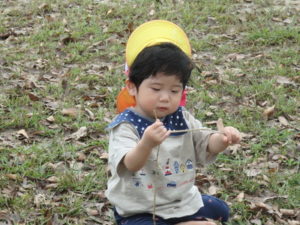 帰り道にはどんぐりが落ちていて、またまた、道草です。やっとやっと保育園にたどり着き、