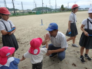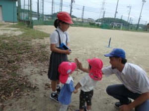 何とか小学校に着き、校長先生に挨拶し、校庭にいた先生にタッチすると「かわいいね~」