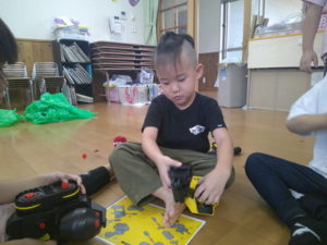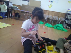 いつもと違う玩具で、なかなか遊べない子どももいましたが、自分たちなりに楽しんでいました。