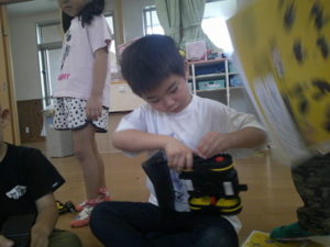 今日は発表会の練習後、新しい玩具で遊びました。