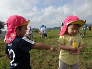 虫🐛や花🌼を見つけて、3クラス仲良く遊ぶ姿が見られました。