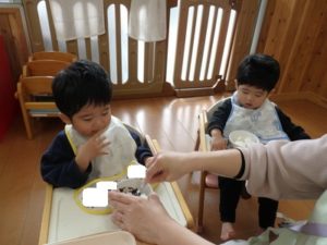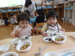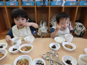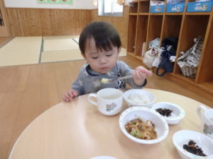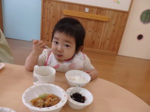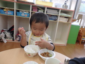 沢山遊んだ後は、美味しい給食を食べました。
