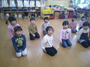雑巾しぼりの練習、排便の処理の練習、来年行う神楽に向けての正座、蹲踞の練習をしました。