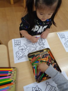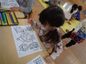 パズル・塗り絵・磁石ブロックと、コーナーを作ると、自分で好きな所に行って遊んでいました。