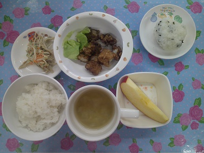 給食は、魚の竜田揚げでした。