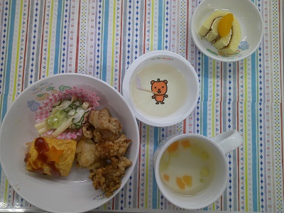 今日はお誕生日会でしたね。皆大好きなオムライスと黄金唐揚げだったので