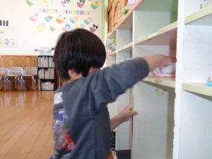 お休みのお友達が多かったのですが、お友達の棚まで一生懸命掃除をしてくれたくま組🐻さんでした😊