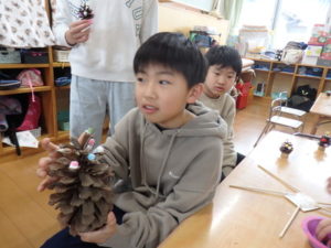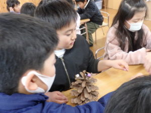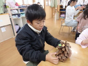 - 大きなまつぼっくりにびっくり