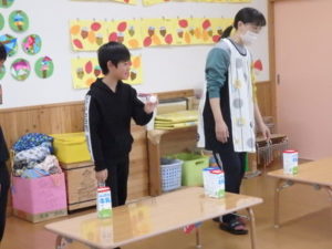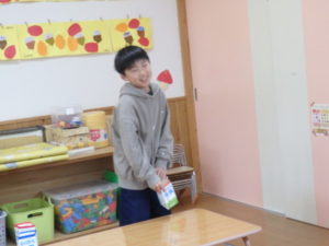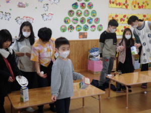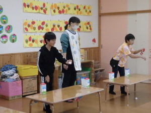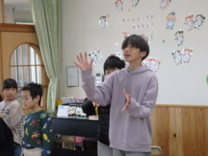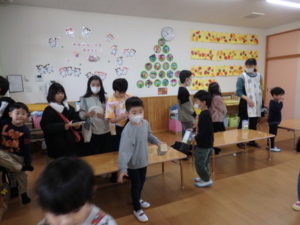 この日は、小学生が朝から保育園に集まってくれ、幼児クラスとの「たしまっこタイム」に参加してもらいました。