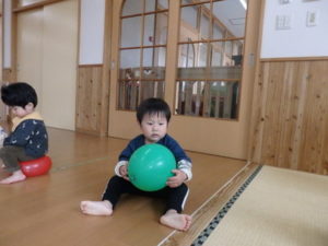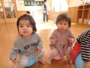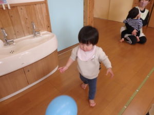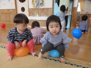 風船では下から風船をたたいてバレーボールのようにして遊ぶ子どももいてラリーが続き、遊び方がだいぶ成長していました。