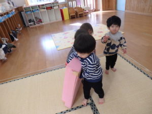 技巧台、滑り台では片方から登る約束がだいぶ守れるようになり、ルールを守って遊ぶ事も出来るようになってきました。
