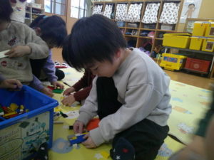 その後、身体測定やブロック遊びをして過ごしています。