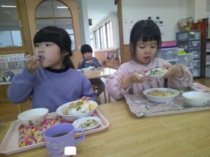 寒さに負けないくらい、ご飯🍚もモリモリ食べているくま組🐻さんです😊