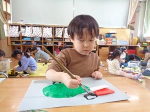 絵の具では、筆🖌を上手く使い、細く描いたり太く描いたりと考えて描く事ができていました。