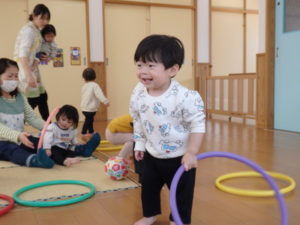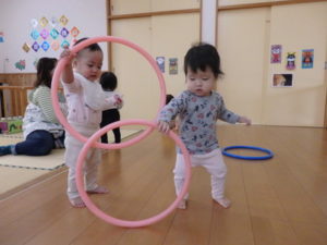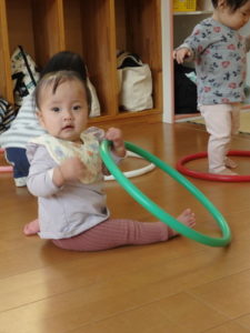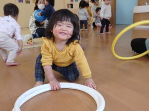 朝のお集まりでフープを見せると、「早く遊びたい❣❣」とすぐ立ち上がるひよこ組🐣さんでした。