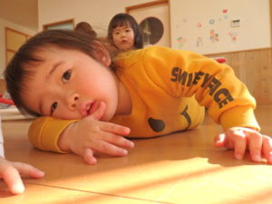 時に、床でゴローンと寝転がったり、お気に入りの玩具が欲しくて取り合う場面もありました。