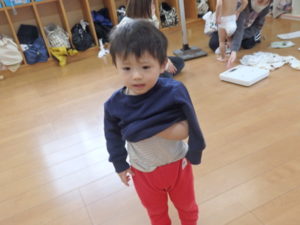 身体測定では、服を自分で脱ごうとする姿がたくさん見られました。