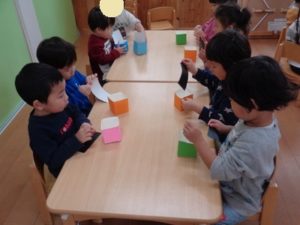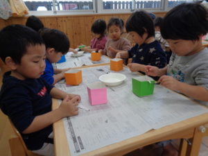 活動では、来週の豆まき👹に向け、豆入れ作りをしました。