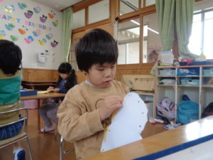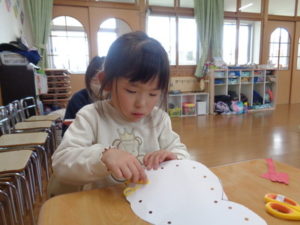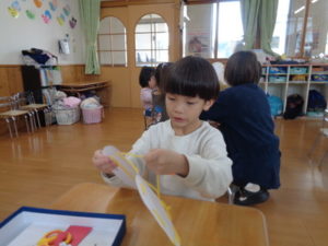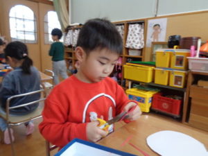 マフラーは、細くて小さく難しかったのですが、一生懸命切る姿が見られました。