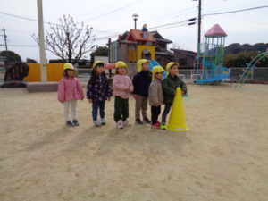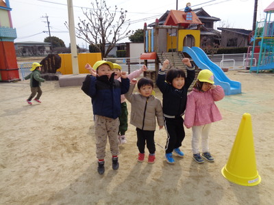 色んな表情、かわいい衣装の雪だるまが出来上がりましたよ。その後、戸外に出て「みんなで遊ぼう」となり、鬼ごっこと陣取りゲームをしてみました。