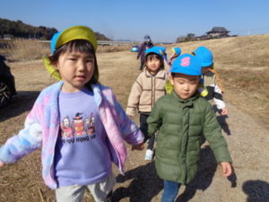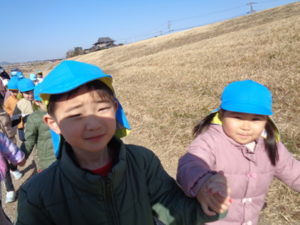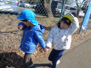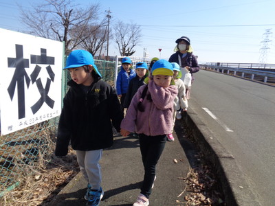 20分たったほどで、体調不良の子どもが出て、途中で折り返して帰園ししました。