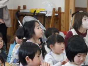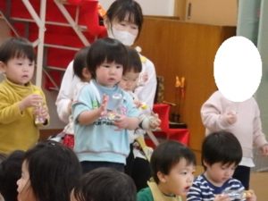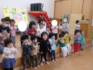 1月の誕生会の時にお休みしていたお友達も一緒にお祝いしました。