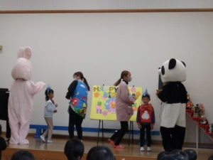 最後は、きりん組🦒の誕生児さんとスペシャルゲストの ぱんだ🐼さん・うさぎ🐇さんが来てくれ、「おどるんようび」のダンスを踊りました。