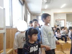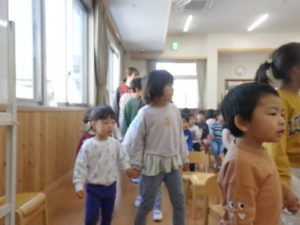 「今までいっぱいお世話してくれてありがとう💖」の気持ちを込めて、音楽に合わせて遊戯室をクルクルと歩き、嬉しそうな子ども達でした。